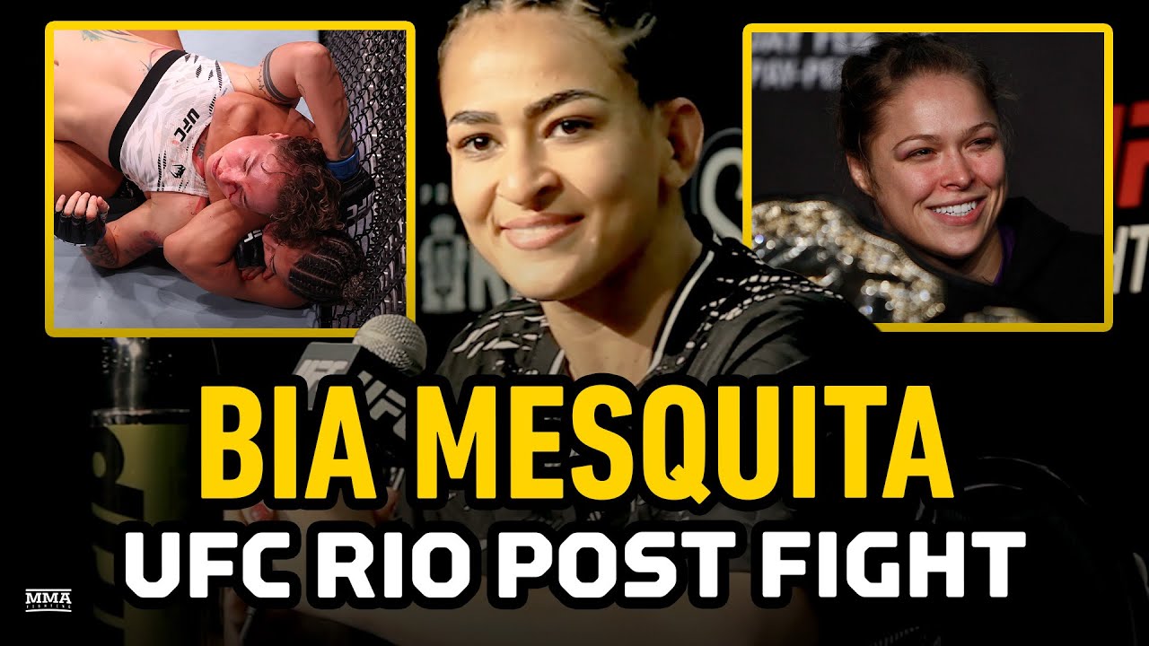 #UFC bantamweight #BiaMesquita reacts to her submission win over Irina Alekseeva at #UFCRIO and makes it known she hopes to matchup with #RondaRousey in the future. 🔵 Join this channel to get access to perks: https://www.youtube.com/channel/UC4f1JueVgo5t9HSmobCRPug/join 🔵 Subscribe to MMA Fighting on YouTube: http://goo.gl/dYpsgH 🔵 Subscribe to MMA Fighting feed on iTunes: https://podcasts.apple.com/us/podcast/mma-fighting/id320642139 🔴 Check out our full video catalog: http://goo.gl/u8VvLi 🔴 Visit our playlists: http://goo.gl/eFhsvM 🔗 Like on Facebook: https://mma-fighting.visitlink.me/jXx747 🔗 Follow on X: https://mma-fighting.visitlink.me/oHZAG3 🔗 Follow on Instagram: https://mma-fighting.visitlink.me/eZP5ff 🔗 Follow on TikTok: https://mma-fighting.visitlink.me/DZzQ3W 🔗 Follow on Threads: https://mma-fighting.visitlink.me/pJJ2xj 🔗 Follow on Bluesky: https://mma-fighting.visitlink.me/GIxe-N 🔗 Subscribe on Twitch: https://mma-fighting.visitlink.me/nSjCJV Read More: http://www.mmafighting.com MMA Fighting is your home for exclusive interviews, live shows, and more for one of the world's fastest-growing sports.