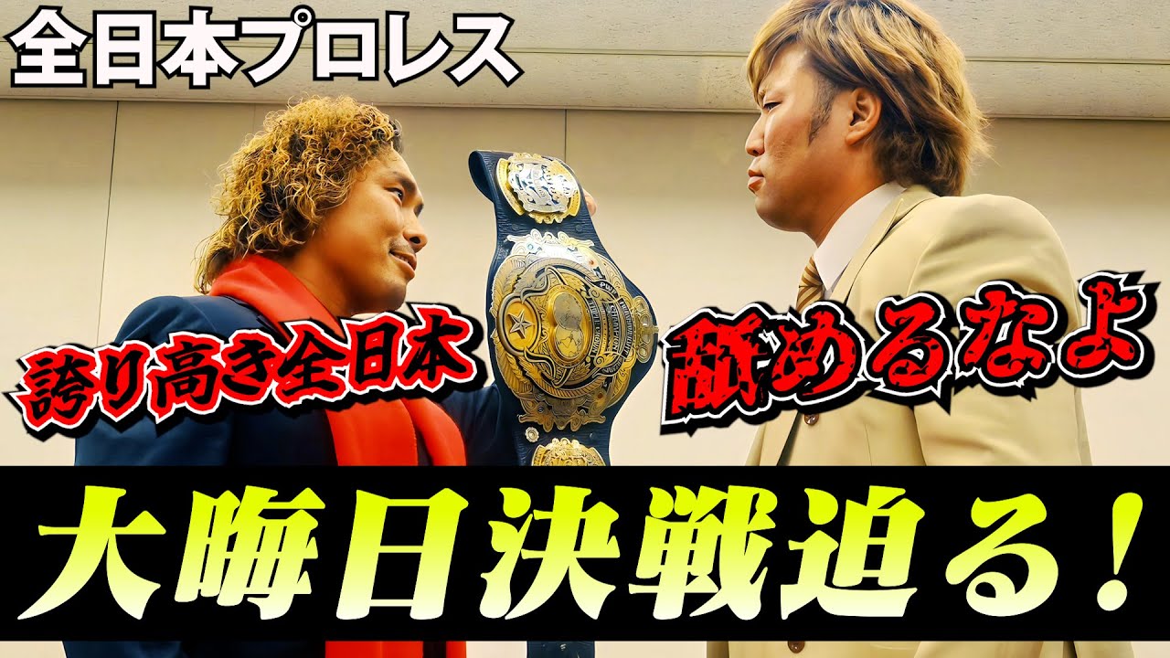 いよいよ明日に迫る“全日本プロレス初”の 大晦日代々木決戦。 至宝をその手に。誇り高き全日本プロレスのエースを刮目せよ。 全日本プロレスを舐めるなよ。 ★全日本プロレス初の大晦日大会! 詳細は下記より。宮原健斗の勇姿を、そして皆で大健斗コールを。 http://www.all-japan.co.jp/wp-new/event/%e6%9d%b1%e4%ba%ac%e3%83%bb%e5%9b%bd%e7%ab%8b%e4%bb%a3%e3%80%85%e6%9c%a8%e7%ab%b6%e6%8a%80%e5%a0%b4-%e7%ac%ac%e4%ba%8c%e4%bd%93%e8%82%b2%e9%a4%a8%e2%89%aa%e6%99%82%e9%96%93%e6%9c%aa%e5%ae%9a-2 【毎月5日・15日・25日 18:00~】配信予定 ※不定期や生配信もあり! お見逃しなく! 皆様チャンネル登録の程何卒宜しくお願いします!! ★宮原健斗に「やって欲しいこと!」・「質問」などなどありましたらコメント欄に是非! ▼プロフィール 宮原健斗(みやはらけんと)全日本プロレス所属/1989年2月27日生まれ/福岡県福岡市出身/186cm 102kg/三冠ヘビー、世界タッグ、アジアタッグなど様々なベルトを巻く日本プロレス界が誇る”スーパースター” http://www.all-japan.co.jp/wp-new/player/%E5%AE%AE%E5%8E%9F-%E5%81%A5%E6%96%97 ▼その他 宮原健斗のYouTube 公式X(旧Twitter) https://twitter.com/miyahara_tube 宮原健斗 X(旧Twitter) https://twitter.com/KentoMiyahara 宮原健斗 Instagram https://www.instagram.com/kento_miyahara/?hl=ja 宮原健斗 blog https://ameblo.jp/kento-miyahara/ 全日本プロレス 公式X(旧Twitter) https://twitter.com/alljapan_pw ★全日本プロレスの激闘は【全日本プロレスTV】で!! 全日本プロレスの試合を月額900円で見放題! 主要大会はLIVEにて配信!アーカイブも随時更新! https://www.ajpw.tv/ #宮原健斗 #ajpw #大晦日代々木決戦 #中嶋勝彦 #三冠ベルトをその手に ★宮原健斗のYouTubeファミリー★ プロデューサー :内畠由貴 演出•ディレクター :大出俊博 ディレクター(AD):小林芙海 最高 :宮原健斗 +ch登録してくださった皆様 制作 :全日本プロレス 制作協力 :ケイマックス
