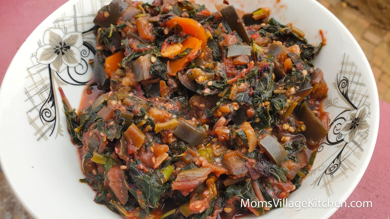 Easy Ugandan Eggplant & Red Spinach Recipe - African Food - Mom's Village Kitchen