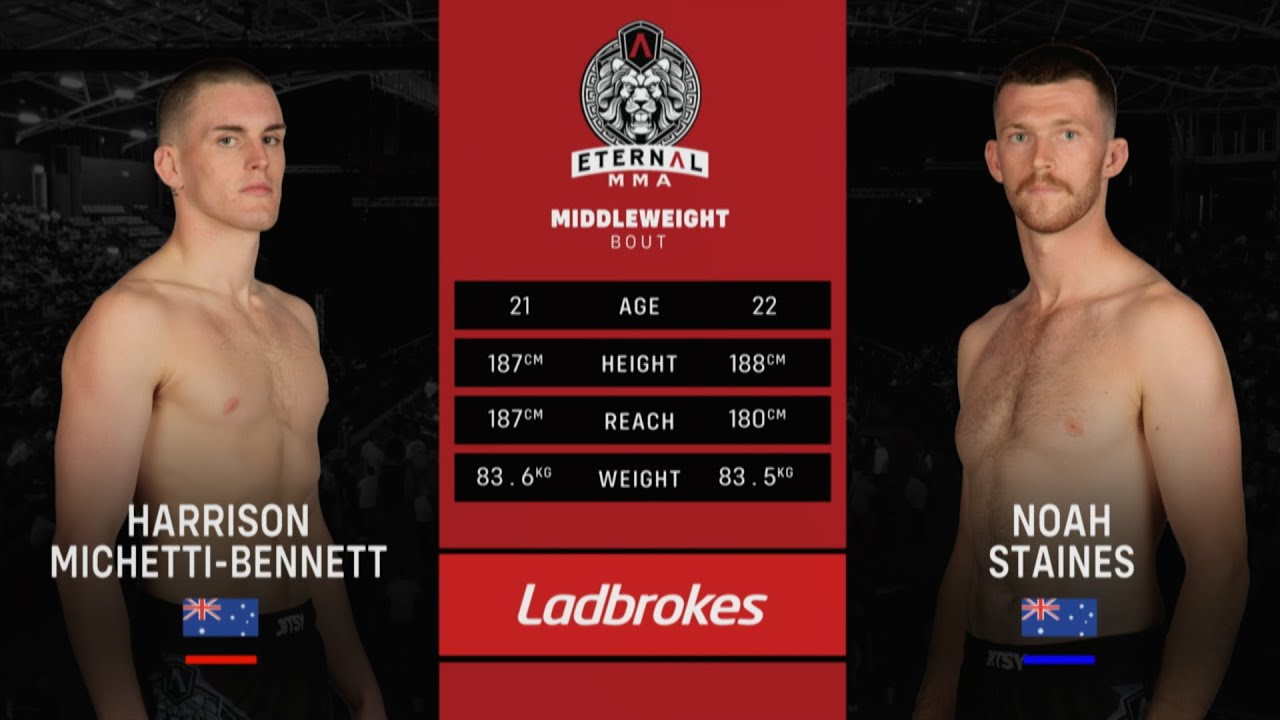 ЁЯФе Welcome to Eternal MMA XEVENTNUMBERX ! ЁЯФе Watch as Harrison Michetti Bennett takes on Noah Staines in a thrilling matchup that showcases the best of Australian mixed martial arts! Eternal MMA is proud to be Australia and New Zealand's premier MMA promotion, bringing you the most electrifying fights from across the region. ЁЯМЯ About Eternal MMA: Based on Queensland's Gold Coast, we promote up to 11 events per year, featuring a talent pool filled with the finest MMA athletes, from rising amateurs to seasoned pros. Our events are known for their intensity, with undercards showcasing top amateur fighters from the Australia-Pacific region, and main cards packed with professional athletes in the most competitive bouts. ЁЯТе Why You Should Watch: - Experience the excitement of live MMA action. - Discover the future stars of the sport. - Enjoy exclusive highlights, KO's, TKO's, and submission victories! ЁЯСЙ Don't forget to subscribe to the Eternal MMA YouTube channel for all the latest fights and highlights, including full fight recaps, behind-the-scenes content, and more! Follow Us: - Facebook: Eternal MMA - Instagram: @EternalMMA - TikTok: @eternalmma - OnlyFans: Eternal MMA - Threads: @eternalmma ЁЯМР For more information, visit www.eternalmma.com. Join the conversation using hashtags: #EternalMMA #MMA #FightNight #AustralianMMA #FullFight #UFC #UFCFightPass