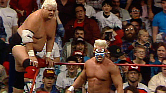 Sting teams with Dusty Rhodes as they seek to become NWA Tag Team Champion against The Road Warriors at WCW Starrcade 1988.