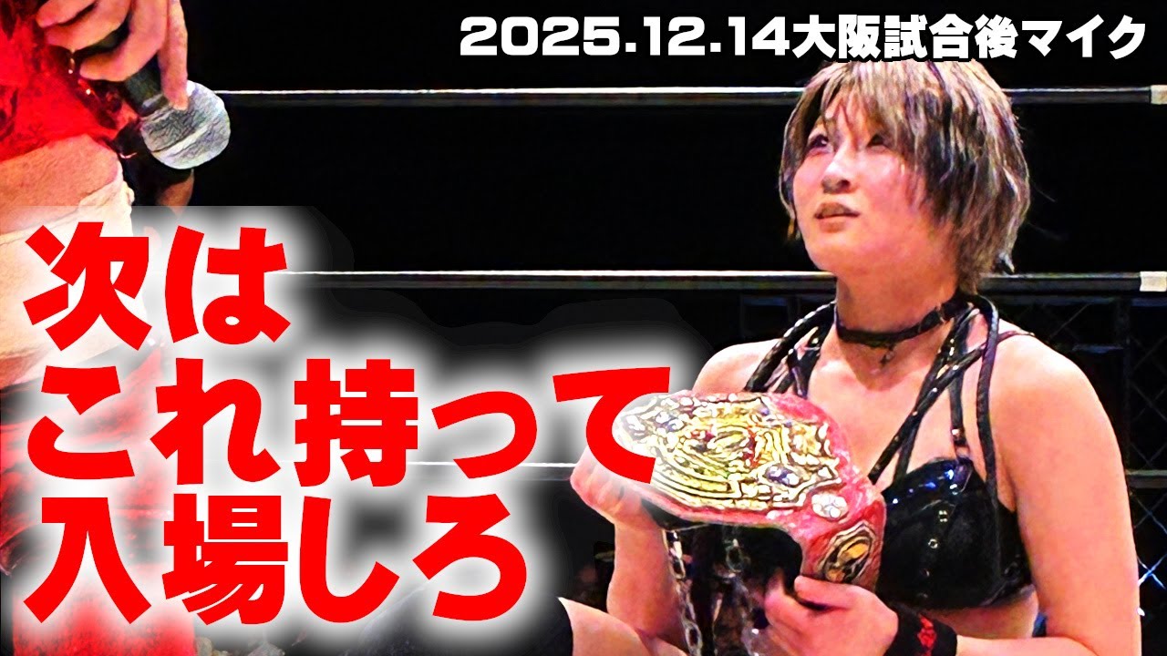 <2025年12月14日大阪大会> 【ファントムリミット】AKINO&ウナギ・サヤカ&✕神姫楽ミサ vs 【正危軍】安納サオリ&●尾崎魔弓&桜花由美 14分54秒 オザキック 札止め満員の大阪大会のメインは再結成後初大阪の正危軍がファンリミを撃破!試合後、尾崎が安納に”あるもの”を渡す…。 ◆試合予定や最新グッズ、メディア出演などOZアカデミーの最新情報はオフィシャルサイトからどうぞ! https://oz-academy.com/ ◆オフィシャルグッズや前売りチケットはOZアカデミーオフィシャルネットショップから! tsuku2.jp/ozacademy OZアカデミーの試合はCS・GAORAスポーツ/GAORAオンデマンドでお楽しみいただけます。 【GAORAスポーツ】https://www.gaora.co.jp/wrestling/1688920/ 【GAORAオンデマンド】https://vod.gaora.co.jp/contents/category/oz CODE:AHZZPTTCDSQCAHNW