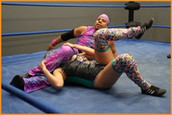 Maximo is downright irritated during Heather’s introduction, booing her loudly and insisting the ref call the match down the middle. The ‘Puerto Rican Sensation’ showcases his bad attitude, insisting he’s there to beat Heather up while she just wants to have a good match. Maximo’s mood doesn’t improve as Heather easily counters his early offense to a stalemate. Heather’s elegant handstand escape from a Headscissors seems to flip a switch in the tightly wound Suave. He lashes out with a strike to the throat and tees off on Heather, dropping her to the canvas with devastating face punches, European Uppercuts, and a fist drop to the head! Maximo endures the ref’s criticism while delivering backrakes and blatant chokes until Monroe finally catches fire, stunning Maximo with a gut punch and setting him up in the corner for a cartwheel splash and running Hip Attack! Another vicious face punch from Suave stops Heather cold and Maximo delivers a powerful Suplex that nearly takes the match. Heather barely gets a shoulder up and the fight continues until one wrestler falls victim to a sunset flip that seals the 3 count victory!