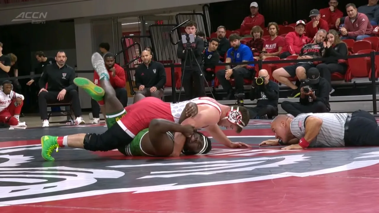 2025/26 NC State vs George Mason wrestling dual HWT #2 Isaac Trumble (NCST fall Herbert Billups (GM) I do not own this video, all credit/rights to EPSN/ACC