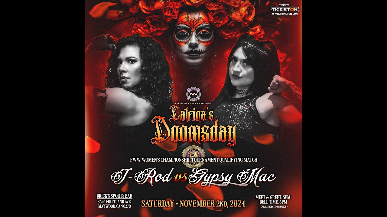 Future of Women's Wrestling Catrina's Doomsday FWW Women's Championship Tournament Qualifying Match: J-Rod vs Gypsy Mac November 2, 2024 The winner of the match goes onto the 5-Way Elimination Main Event Match