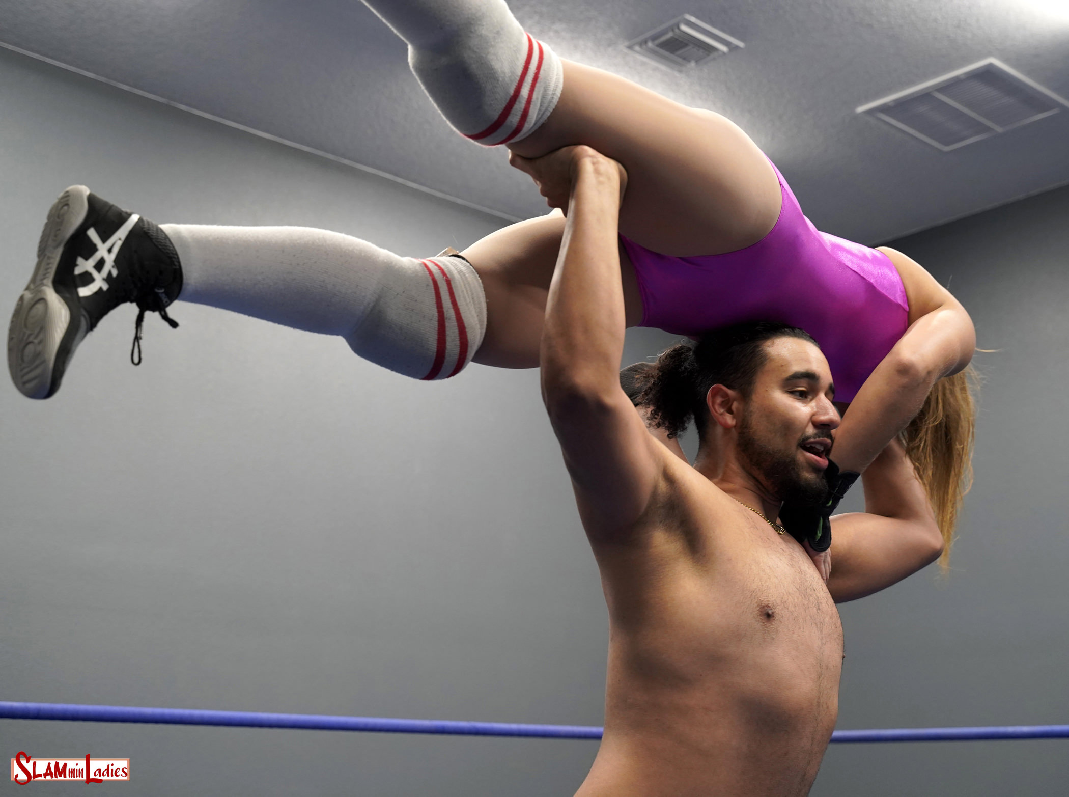 Tesha & Kiah are having a ball doing a photo shoot only to be interrupted by Jay who demands they clear his ring and he doesn’t ask nicely. The girls make the wrong choice and soon Tesha is held aloft in an impressive Gorilla Press as Jay can’t quite decide what to do with her before finally nearly breaking her shoulder in two! Kiah’s Gorilla Press goes little better as she ends up taking a brutal Backbreaker out of a Fireman’s Carry! Both ladies end up getting choked out in different corners but just when they think the worst is over Jay’s back and threatens to launch Tesha straight out of the ring before settling on a thunderous Bodyslam, Kiah likewise likely sees her life flash before her eyes as he threatens to toss her out before merely slamming her into the mat with authority! The ladies again think the worst is over but Jay is back for an encore and another slam for Kiah. Tesha isn’t as cooperative with the Gorilla Press this time and a Gutbuster across Jay’s broad shoulders is her punishment. In the end Jay stands tall and the next photo shoot Tesha and Kiah do will likely be for X-Rays.