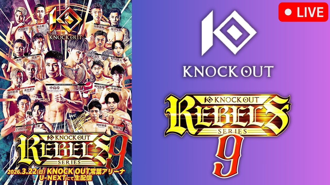 Knock Out Rebels Series 9, Sunday, March 22nd Tokiwa, Fukushima, Japan, Knock Out Tokiwa Arena The City Life Project Watch Party/Watch Along & FIGHT COMPANION LIVESTREAM *DISCLAIMER* I Will not be showing the actual K-1 STREAM stream, it is ILLEGAL, against YouTube TOS. This is strictly a watch-along/ watch party with you guys as an appreciation for all your support of the channel! -MAIN CARD- Rei Nakajima vs. Rikito Hiroki Naruo vs. Reiya Komori Yuya Minagawa vs. Gotu Mogi Ryuki Kawano vs. Ryuga Natsume Yoshiki vs. Ibuki Harunobu Takeuchi vs. Asataro Kyosuke Uyama vs. Munemasa Tomoki Suda vs. Daichi Kato Kazuki Moue vs. Yuta Hayakawa Vlog Channel Featuring two Members of the Canadian Band "The City Life Project" Join two longtime friends & bandmates, Recording Artist Kyle Mudge & Media Entrepreneur Isha Jahromi behind the scenes whether in the Recording Studio, Working in Media, Promoting Local Artists, and/or feeding the animals at Kyle's farm. Sit back & enjoy our podcast episodes, vlog show, and exclusive music content from The City Life Project...PLUS MORE! Two lifelong friends on Vancouver Island, British Columbia Canada with dope cameras sharing our experiences with you. SIMPLE Subscribe, Like, & Comment because we are TOTALLY INTERACTIVE! Follow Kyle Mudge on Twitter @kylemudge1 Follow Isha Jahromi on Twitter @VISportstalk Follow The City Life Project on Facebook @TheCityLifeProject Kyle's Projects: SPOTIFY: https://open.spotify.com/artist/3sYNI... APPLE MUSIC: https://music.apple.com/fr/artist/tre... Knock Out Rebels Series 9 Knock Out Rebels Series Knock Out Knock Out Youtube Knock Out Rebels Series 9 | LIVE STREAM ライブストリーム | KICKBOXING FIGHT COMPANION Nakajima vs. Rikito🇯🇵 #KnockOut #KnockOutRebelsSeries9 #KnockOut2026 #KnockOutRebelsSeries #KnockOutKOClimax #KnockoutKickboxing #KnockoutRebelsSeries #K1 #K1Kickboxing #K1Rebirth #RISE #RISEKickboxing #Krush #Kickboxing #fighting #livestream #kickboxing #muaythai #rizin #deep #pancrase #glorykickboxing #glory #combatcasual