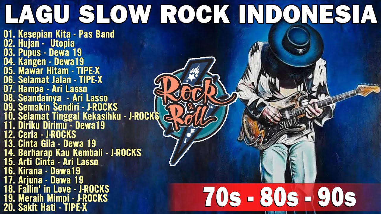 Lagu Rock Indonesia ( Band Rock Legend Indonesia ) | Playlist Rock Song Indonesia | Utopia | Dewa 19 .......................................... Tracklist: 00:00:00 01. Kesepian Kita - Pas Band 00:04:06 02. Hujan - Utopia 00:07:56 03. Pupus - Dewa 19 00:13:01 04. Kangen - Dewa19 00:18:35 05. Mawar Hitam - TIPE-X 00:23:04 06. Selamat Jalan - TIPE-X 00:27:31 07. Hampa - Ari Lasso 00:32:29 08. Seandainya - Ari Lasso 00:37:10 09. Semakin Sendiri - J-ROCKS 00:41:50 10. Selamat Tinggal Kekasihku - J-ROCKS 00:45:51 11. Diriku Dirimu - Dewa19 00:51:20 12. Ceria - J-ROCKS 00:55:13 13. Cinta Gila - Dewa 19 00:59:28 14. Berharap Kau Kembali - J-ROCKS 01:03:59 15. Arti Cinta - Ari Lasso 01:08:10 16. Kirana - Dewa19 01:12:30 17. Arjuna - Dewa 19 01:17:43 18. Fallin' in Love - J-ROCKS 01:21:57 19. Meraih Mimpi - J-ROCKS 01:25:13 20. Sakit Hati - TIPE-X 01:28:55 21. Kau Curi Lagi - J-ROCKS 01:33:47 22. Mistikus Cinta - Dewa 19 01:39:25 23. Lepaskan Diriku - J-ROCKS 01:43:22 24. Dua Sedjoli - Dewa 19 01:48:46 25. Salam Rindu - TIPE-X 01:52:29 26. Cobalah Kau Mengerti - J-ROCKS 01:56:23 27. Aku Milikmu - Dewa19 02:01:55 28. Lagi-Lagi Sendiri - TIPE-X 02:06:56 29. Restoe Boemi - Dewa 19 02:12:13 30. Juwita Hati - J-ROCKS 02:15:20 31. Lagu Cinta - Dewa 19