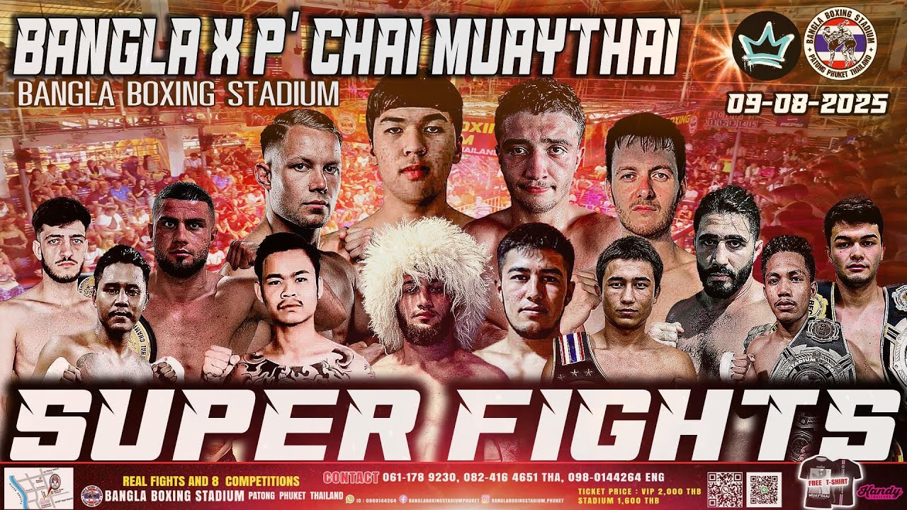LIVE BANGLA MMA & KICKBOXING Real Fight 09th August 2025 Two worlds collide in a battle of skill, strength, and heart. Who will reign supreme in this Kickboxing & MMA superfight? FREE T-shirt! ЁЯСХ SATURDAY NIGHT SUPER FIGHT ЁЯеКЁЯеК 09th August 2025 ЁЯФеЁЯФеBANGLA BOXING STADIUMЁЯФеЁЯФе Every Tuesday, Wednesday ,Friday, Saturday and Sunday night. Gate open : 8:30PM. Start time : 9PM. #banglaboxingstadium #banglapatong #thaiboxing #phuketboxingstadium #muaythaiphuket #thaiboxingphuket #kickboxing #MMA р╕Фр╕╣р╕Щр╣Йр╕нр╕вр╕ер╕З