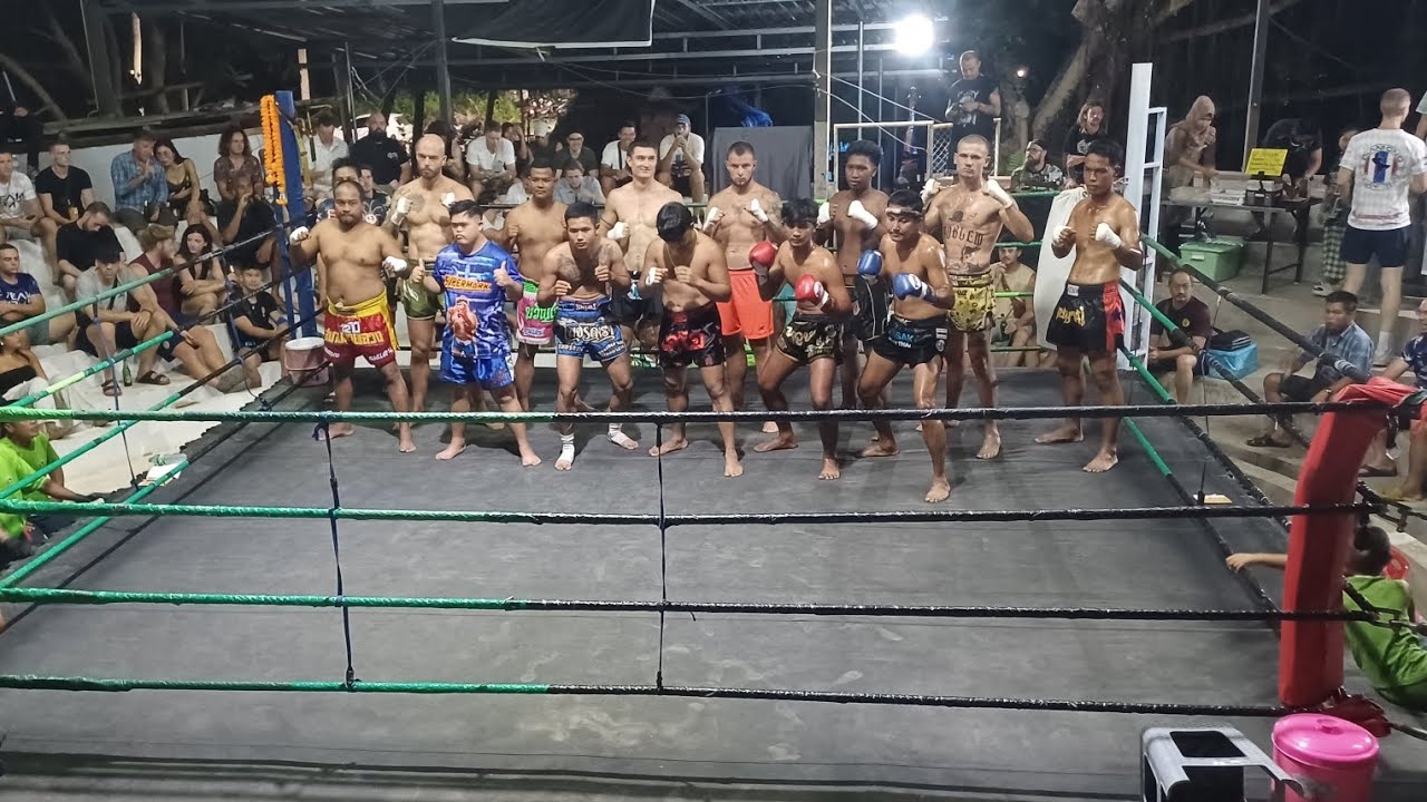 00:00 Intro 7:02 PETWANMAI Rittisak MT vs X 21:00 JAMIE Diamond MT vs PETTEA Mac MT 30:48 STEPHAN Maa MT vs SHANASUEK Sornpichai 37:27 ALBAN M19 MT vs PETBANRAI Sangmorakot MT 1:06:59 X Diamond MT vs X 1:24:55 TOBY Rittisak MT vs SUPERMAC Mac MT @muaythaisland #muaythai #kohphangan #thaifight #thaifighter #fighter