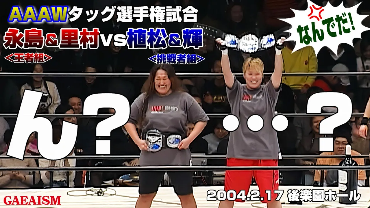 【女子プロレス GAEA】まさかの決着…!? 里村明衣子 & 永島千佳世 vs 植松寿絵 & 輝優優 2004年2月17日 東京・後楽園ホール AAAWタッグ選手権試合
