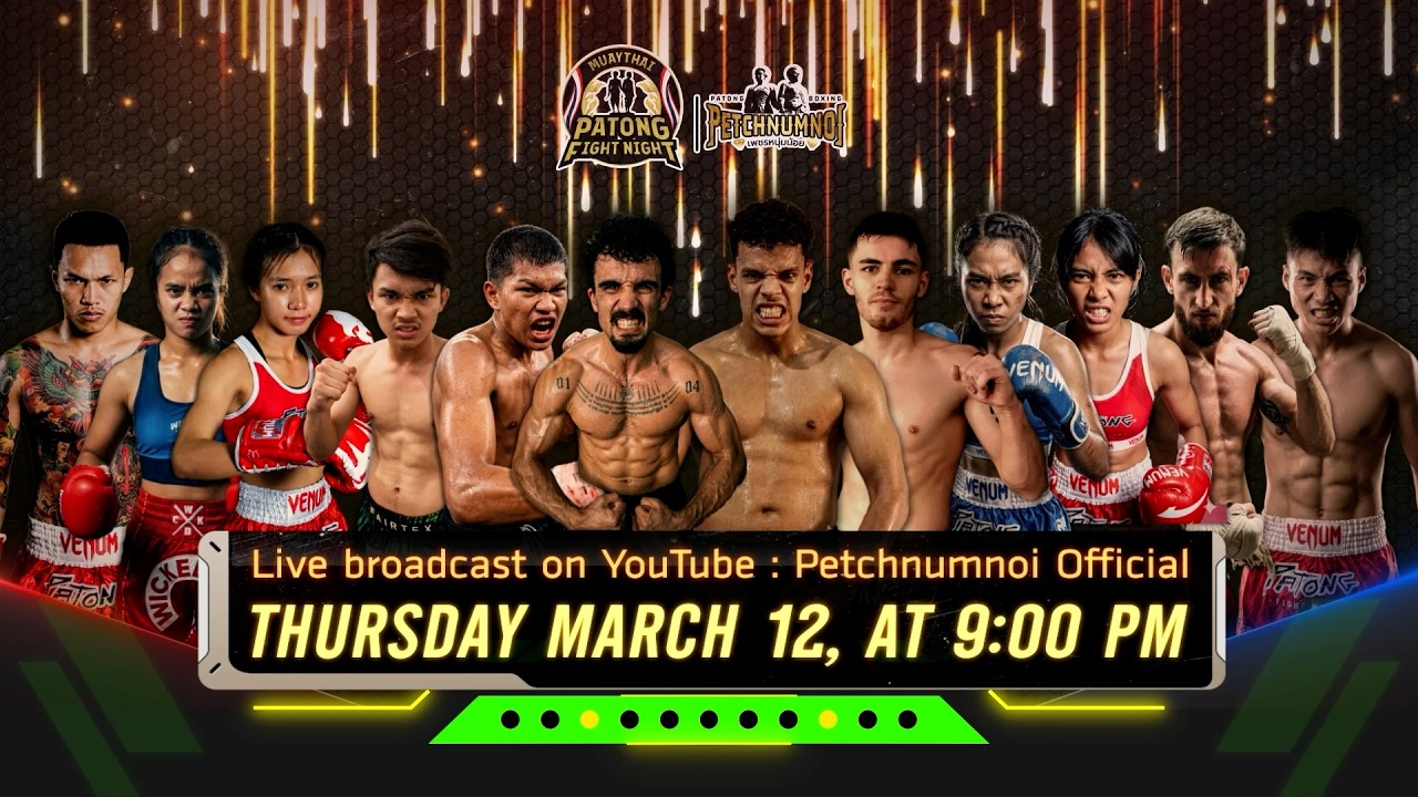 🥊 [LIVE] PATONG FIGHT NIGHT 🗓 12 MARCH 2026 ⏰ 9:00 PM 🏟 Patong Boxing Stadium 👉 🎟 Ticket Booking https://api.whatsapp.com/message/CCO6... 🔗Follow us Facebook : https://www.facebook.com/Patongfightnight Instagram : https://www.instagram.com/petchnumnoi_gym #มวยไทย #มวยดี #มวยสนุก #มวยพลิก #ป่าตอง #สนามมวยป่าตอง #นานาชาติ #เพชรหนุ่มน้อย #PETCHNUMNOI #MUAYTHAI #PATONG #PHUKET #PATONGFIGHTNIGHT #FIGHT #THAILAND #MARTIALARTS #BOXING #THAIBOXING #STADIUM