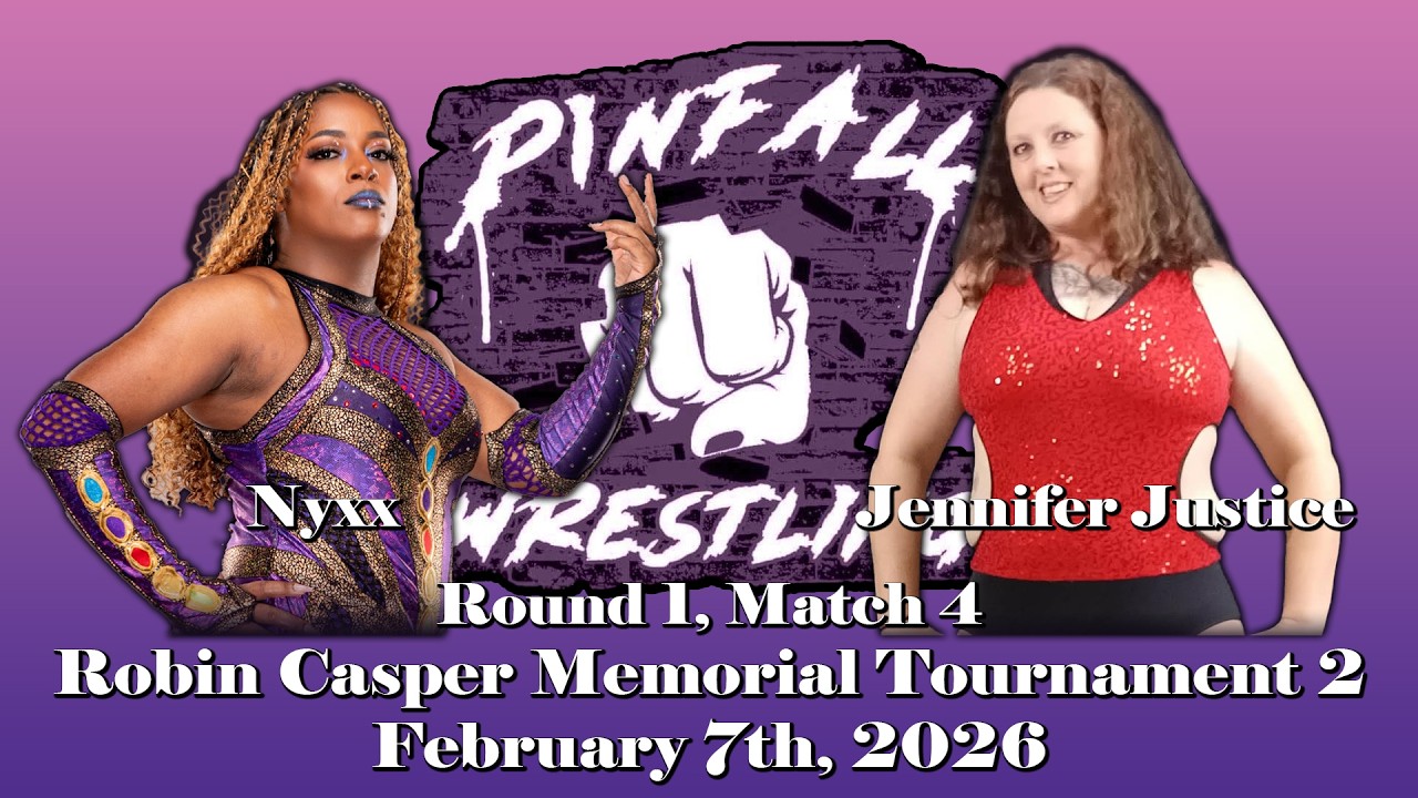 In this last match of the first round of the Robin Casper Memorial Tournament, Nyxx and Jennifer Justice make their debuts… Originally taped February 7, 2026 at "Robin Casper Memorial Tournament 2" Ring Announcer: Eric Roe Referee: Jayson Behrens Filming and Editing: Andrew Thannen Nyxx entrance music: "Swamped" by Lacuna Coli Jennifer Justice entrance music: "I Am the Fire" by Halestorm Pinfall Wrestling claims no ownership of any copyrighted music used. All rights belong to their respective owners. Follow us on Facebook to stay updated on upcoming events: https://www.facebook.com/PWASpringfield