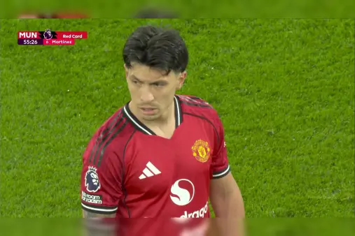[Red Card] Dramatic twist! Lisandro Martinez sent off for pulling Dominic Calvert-Lewin's hair
