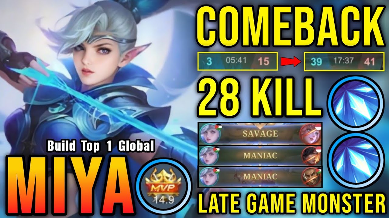 SAVAGE + 2x MANIAC!! 28 Kills Miya Carry The Game!! - Build Top 1 Global Miya ~ MLBB