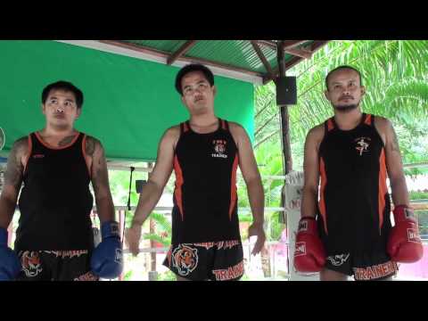 Tiger Muay Thai and MMA training camp, Phuket, Thailand trainers 4-time Lumpinee Champion Master Goi, Kru Kay, Kru Phet demonstrate Muay Thai boxing techniques: Defend knee and respond with hook to face. 1. Opponent steps forward to attack with knee strike. 2. Quickly sidestep opponents knee. 3. Respond with same side hook directly to jaw / face. Train like a Thai and fight like a Thai @TigerMuayThai http://www.tigermuaythai.com