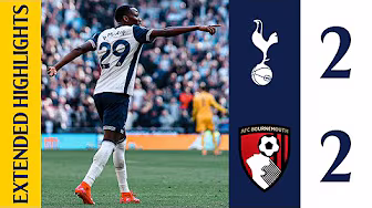 Watch extended highlights from Spurs' 2-2 draw with Bournemouth in the Premier League. Goals from Pape Matar Sarr and Heung-Min Son secured a point after going 2-0 down. SUBSCRIBE to ensure you don’t miss a video from the Spurs YouTube channel. Hit the bell to get notifications on our latest uploads! ► Subscribe: / @tottenhamhotspur FOLLOW US! Instagram: / spursofficial Twitch: / tottenhamhotspur TikTok: / spursofficial Twitter: / spursofficial Facebook: / tottenhamhotspur Download the Spurs App: https://www.tottenhamhotspur.com/spur...