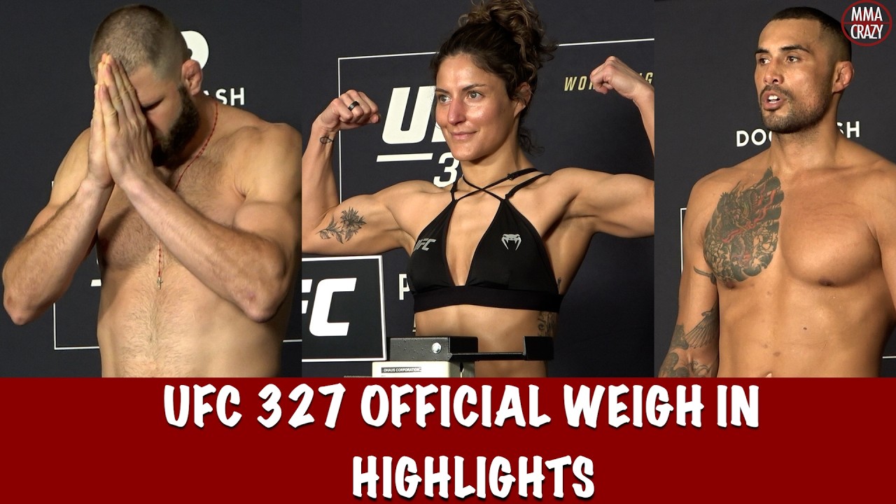 UFC 327 Fighters weigh-in in order Tatiana Suarez, Loopy Godinez, Randy Brown, Dominick Reyes, Calvin Gastelum, Paulo Costa, Mateusz Gamrot, Kevin Holland, Esteban Ribovics, Johnny Walker, Patricio Pitbull, Vicente Luque, Nate Landwehr, Cub Swanson, Marquel Mederos, Francisco Prado, Charles Radtke, Josh Hokit, Azamat Murzakanov, Carlos Ulberg, Aaron Pico, Curtis Blaydes, Chris Padilla, Jiri Prochazka Twitter: http://www.twitter.com/MMACrazy Instagram: http://www.Instagram.com/MMA_Crazy Click on the link below to subscribe http://www.youtube.com/user/mmacrazytv?sub_confirmation=1