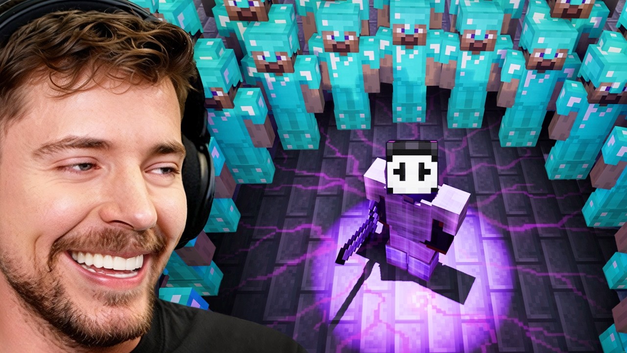 How many YouTubers does it take to beat the world’s deadliest player? Go get the new Feastables Caramel bar at Walmart, Target, or Albertsons :) 👉 https://fstbls.com/5mj6dv FeastablesPartner SUBSCRIBE OR YOU'LL HAVE BAD LUCK New Merch - https://mrbeast.store Join our discord server for your chance to compete in future Minecraft challenges! https://discord.gg/mrbeastgaming ---------------------------------------------------------------- follow all of these or i will kick you • Facebook - https://www.facebook.com/MrBeast/ • Twitter - https://twitter.com/MrBeast • Instagram - https://www.instagram.com/mrbeast --------------------------------------------------------------------