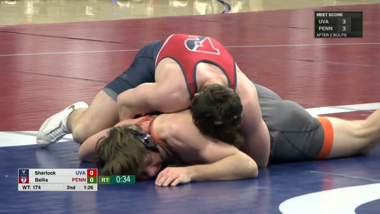 2025/26 Penn vs Virginia wrestling dual 174lbs Caden Bellis (PENN) dec Emmitt Sherlock (UVA) I do not own this video, all credit/rights to ESPN/Ivy League