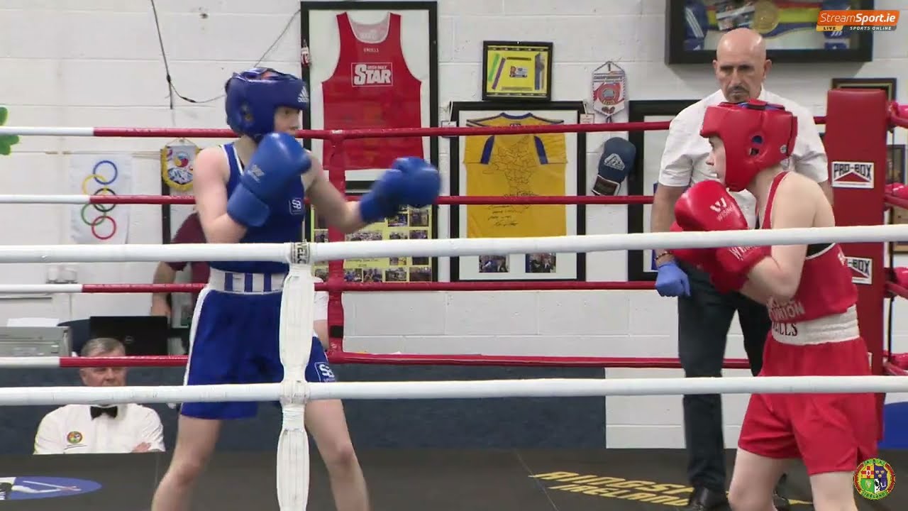 Emily Butler (Ballinrobe) and Ella Thompson (Setanta) in the 2024 National Junior 2 Championship 46kg final, streamed by @streamsport-ie7508 #boxing #boxingireland #boxer #irishboxing #IABA #olympicsport #iaba #bout #fight #titleboxing #championshipboxing #boxingnews