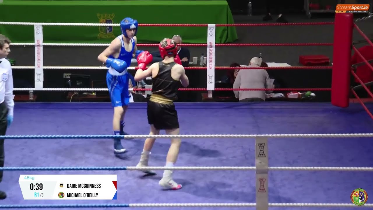 Daire McGuinness (St Monicas) and Michael O’Reilly (St Pauls Wat) contested this 2024 National Senior Cadet Championship 48kg semi final, streamed by @streamsport-ie7508 #boxing #boxingireland #boxer #irishboxing #IABA #olympicsport #iaba #bout #fight #titleboxing #championshipboxing #boxingnews #fightnight