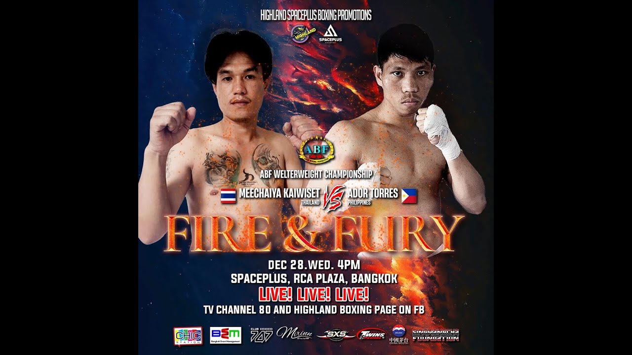 Ador Torres VS Meechaiya Kaiwiset | Spaceplus Bangkok | Dec 28, 2022 Fire and Fury - Triple Championship Match Dec 28, 2022, Spaceplus Bangkok, Thailand ABF Welterweight Championship
