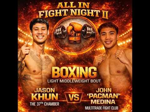 JOHN MEDINA vs JASON KHUN BOXING EVENT: ALL IN FIGHT NIGHT 2 π₯ Promoter: ALL IN BOXING π₯ Filmed by: G2G Productions π Location: 459 Roscommon Road, Clendon, Auckland, New Zealand #corporateboxing #nzboxing #g2gproductions Are you looking to capture your own sporting event, celebration, or special occasion? G2G PRODUCTIONS offers experienced video recording & livestreaming services tailored to meet your needs. π Learn more about G2G PRODUCTION services: Link Tree: https://linktr.ee/g2gproductions Email: g2gproductions22@gmail.com Facebook: https://www.facebook.com/G2GProductionz Instagram: https://www.instagram.com/g2gproductions/ TikTok: https://www.tiktok.com/@g2gproductions π Want to compete in upcoming events? Contact ALL IN BOXING for upcoming events on: Instagram: https://www.instagram.com/all_in_fightnight/ π Donβt forget to LIKE, SUBSCRIBE, and hit the BELL ICON for the latest highlights and releases from G2G Productions. Disclaimer: We do not own the rights to the music used in this video.