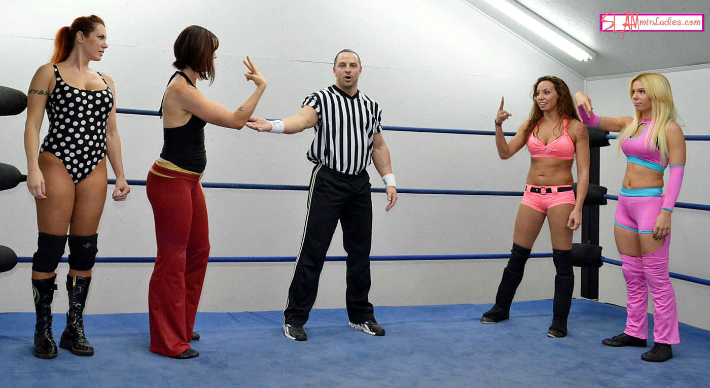 A tag team extravaganza with a time limit of 7 days! April and Kimberly start things with off with so do-si-do Hammerlock action and a quick doubleteam. April cuts things off with some low blow action and a call for some doubleteaming of her own. She and Nikki make the legs of Kimberly their targets and very effectively keep her away from a tag and available for punishing. KImberly endures quite a beating, at one point even being forced to pose for April to practice her photography. An eventual tag gets a well-rested Brittney into the mix, but will her team be able to overcome the beatings and capture a picture perfect ending?
