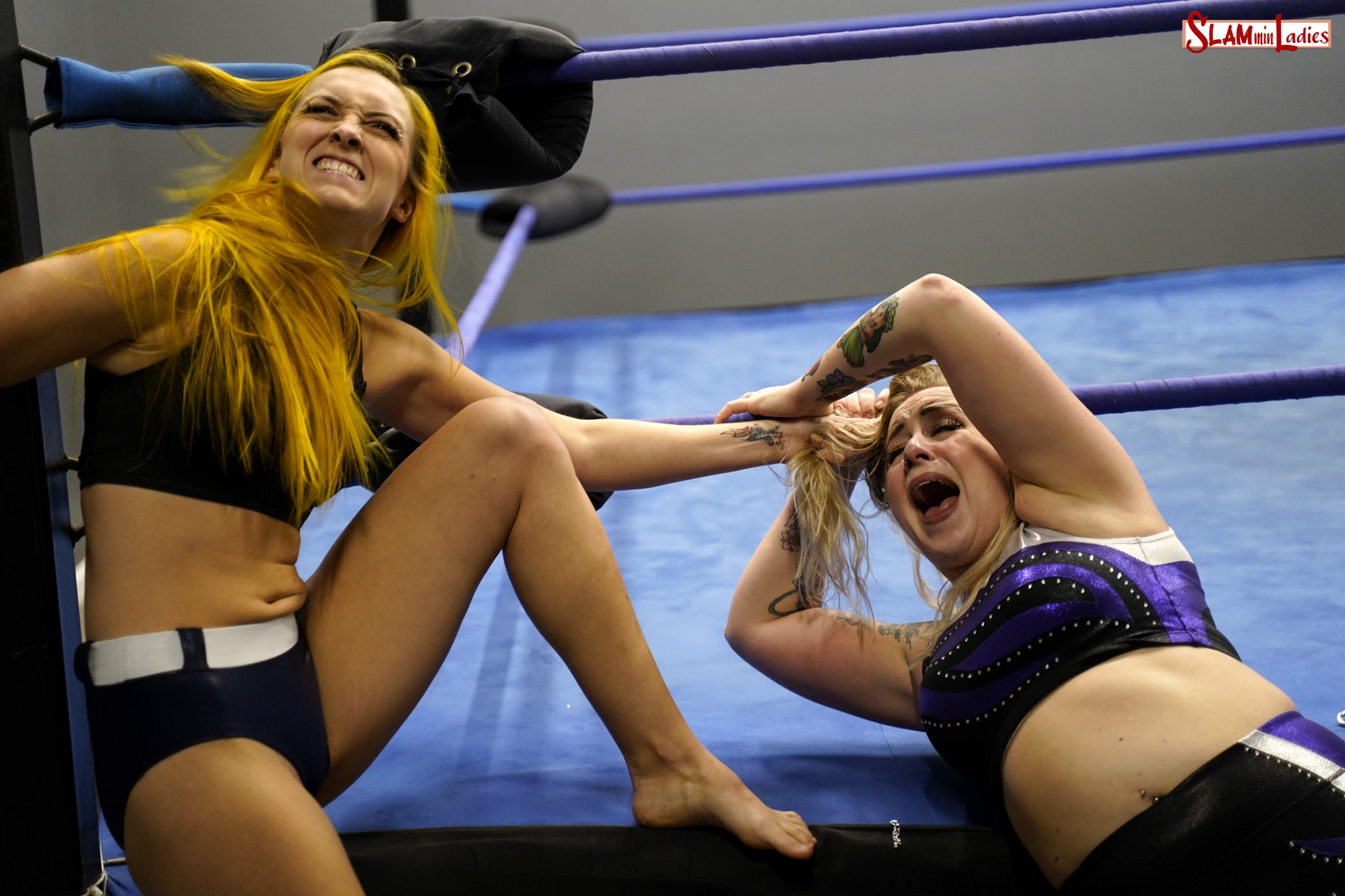 Kimber is elated to have a match with Ava, but Everett is visibly upset. Ava declares herself the greatest blonde professional wrestler while Kimber questions whether her hair color even qualifies as blonde at all. Lee takes a wicked throat strike and is soon trapped in a Camel Clutch as Ava chokes her with a chain! Kimber is unprepared for yellow-haired Ava’s wrath as she unloads on the blonde as though she’s facing off against whoever made the store-bought box dye that’s been giving her so many problems. Kimber suffers a boot choke and a rope-hung Chinlock before Ava sends her crashing to the outside. The rage-filled Everett drives Kimber face first into the ring apron before using the ropes for better leverage on a vicious hairpull. Lee is down and out as Ava comes at her with a broom to further torture her foe. Kimber is a veteran fighter but will she be able to turn the tide against Ava’s rage-fueled onslaught?