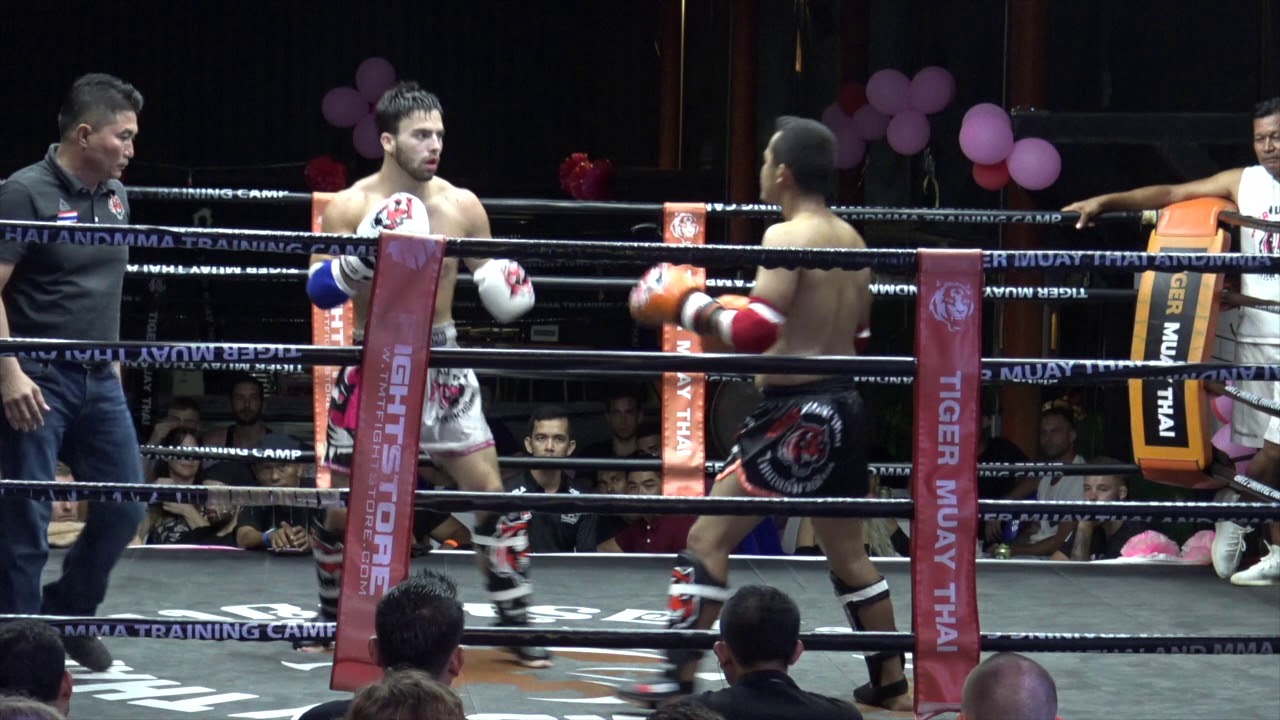 In this amateur Muay Thai bout, Shen from Bhutan (red) and Kyle from Canada (blue) face off. This fight is from BBQ Beatdown 126, held at Tiger Muay Thai & MMA training camp on the 23rd of February 2019. This monthly full moon party event features all you can eat food and drink, music from a professional DJ, and both professional & amateur fights in Muay Thai, MMA, BJJ and western boxing. Train with us at our Soi Taied gym: https://www.tigermuaythai.com/ Our new Beachside gym: https://www.tigermuaythaibeachside.com/ Get our gear: https://www.tmtfightstore.com/en/ Learn online: https://tigermuaythaionline.com/