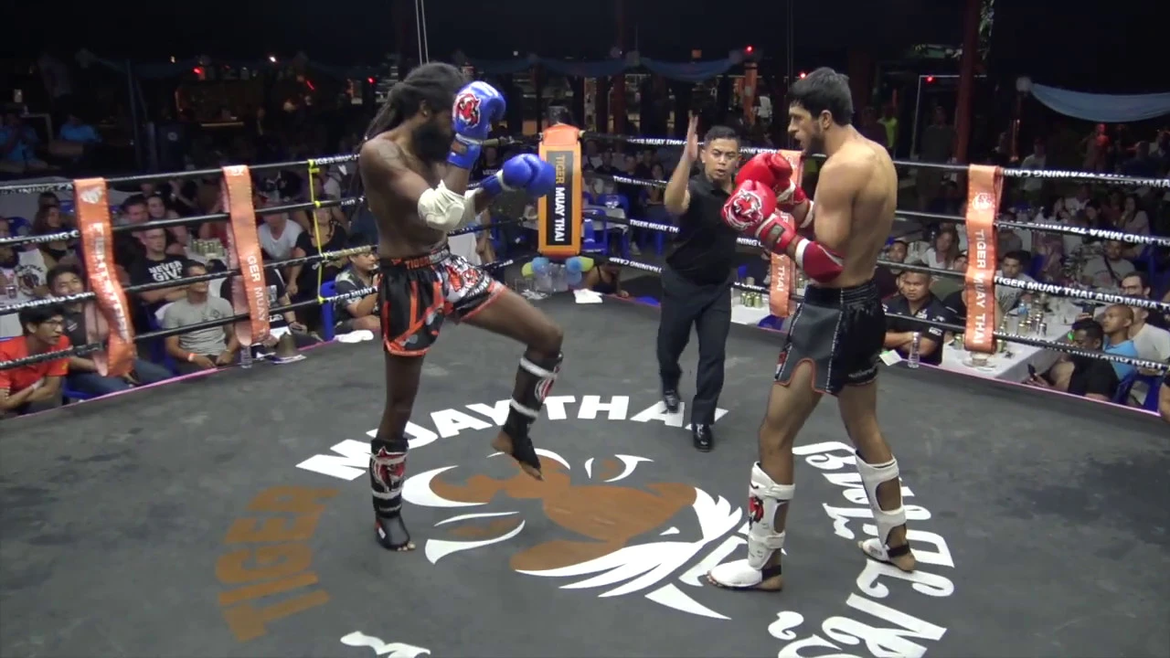 In this amateur Muay Thai bout, Yani from Guadeloupe (red) and Yamchit from Uzbekistan (blue) face off. This fight is from BBQ Beatdown 135, held at Tiger Muay Thai & MMA training camp on the 21st of December 2019. This monthly full moon party event features all you can eat food and drink, music from a professional DJ, and both professional & amateur fights in Muay Thai, MMA, BJJ and western boxing.