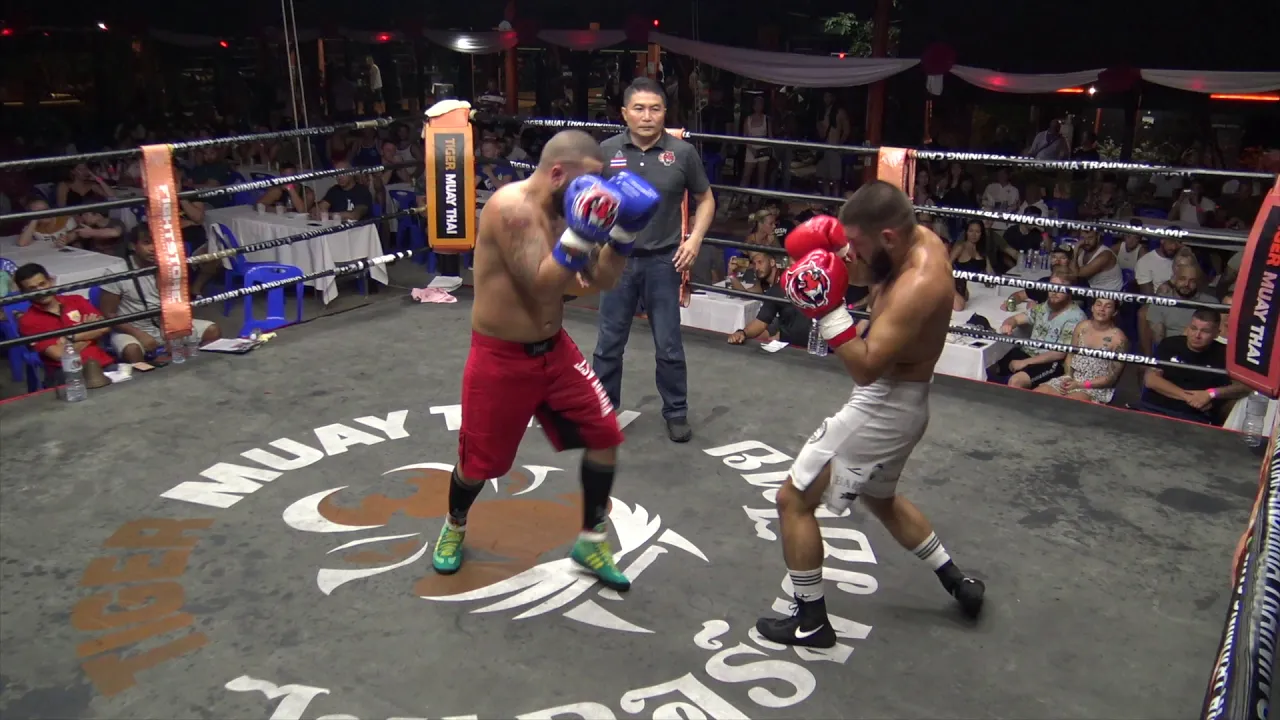 In this amateur Muay Thai bout, Omer from Denmark (red gloves) and Dernus from Turkey (blue gloves) face off. This fight is from BBQ Beatdown 138, held at Tiger Muay Thai & MMA training camp on the 29th of February 2019. This monthly full moon party event features an all-you-can-eat BBQ, 2 free drinks, fully stocked bar, music from a professional DJ, and both professional & amateur fights in Muay Thai, MMA, BJJ and western boxing. Train with us at our Soi Taied gym: https://www.tigermuaythai.com/ Our new Beachside gym: https://www.tigermuaythaibeachside.com/ Get our gear: https://www.tmtfightstore.com/en/