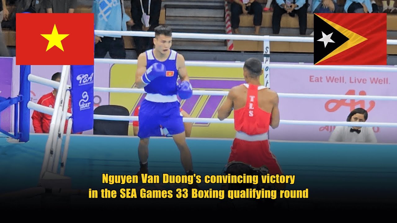 Watch the replay of the men's 57kg boxing match at the 33rd SEA Games (Thailand). Vietnamese boxer Nguyen Van Duong (Blue Corner) delivered an outstanding performance against his opponent De Jesus Grigorio from Timor Leste (Red Corner). With superior experience and technique, Nguyen Van Duong dominated the match and secured the victory, bringing joy to Vietnamese fans. #Boxing #SEAGames33 #SEAGames2025 #VietnamBoxing #NguyenVanDuong #TimorLeste #TeamVietnam #BoxingHighlight #AsianSports #Thailand2025