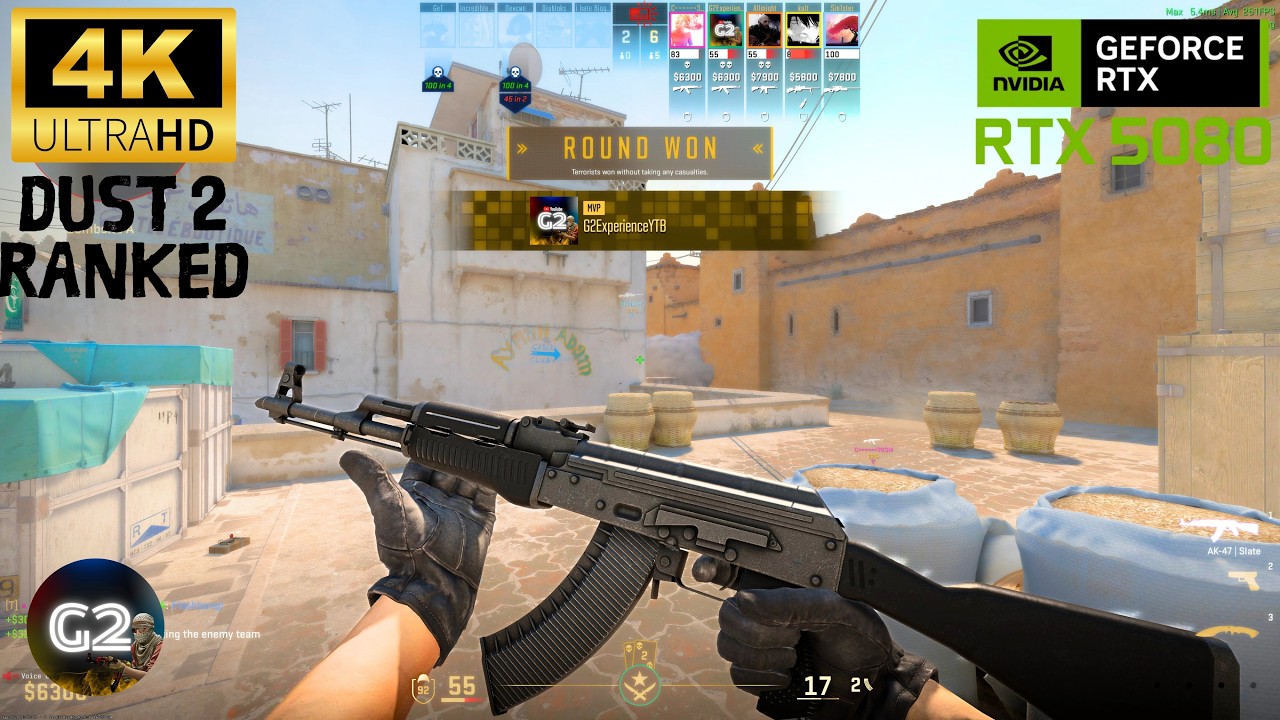 I hope you enjoy watching this challenging match! . Let me know what you think in the comments! . To see more and never miss an upload, subscribe to the channel and turn on the bell! . Counter-Strike 2 - Dust2 Ranked 4K Max Settings No Commentary Gaming 4K Experience Immersive Gameplay “NO MIC” . . 🖥️ My Pc Setup; CPU: AMD Ryzen 9 9950X3D 4.3GHz 128MB GPU: MSI RTX 5080 16G SHADOW 3X OC CPU Cooler: MSI MAG CORELIQUID A13 360 Motherboard: MSI B850 GAMING PLUS WIFI RAM: Kingston 64GB(2x32) Beast RGB EXPO 6000MHz PSU: MSI MAG A1250GL PCIE5 1250W 80+ Gold SSD: KIOXIA EXCERIA PRO 2TB NVMe M.2 SSD (7300/6400) CASE: MPG VELOX 100R WHITE MONITOR: ASUS TUF Gaming XG27UCS 27 FAST IPS HDR 3840x2160 1MS 160Hz MAUSE: attack shark x3 pro superlıght KEYBOARD: steelseries Apex 3 TKL . . Counter Strike 2 Cs2