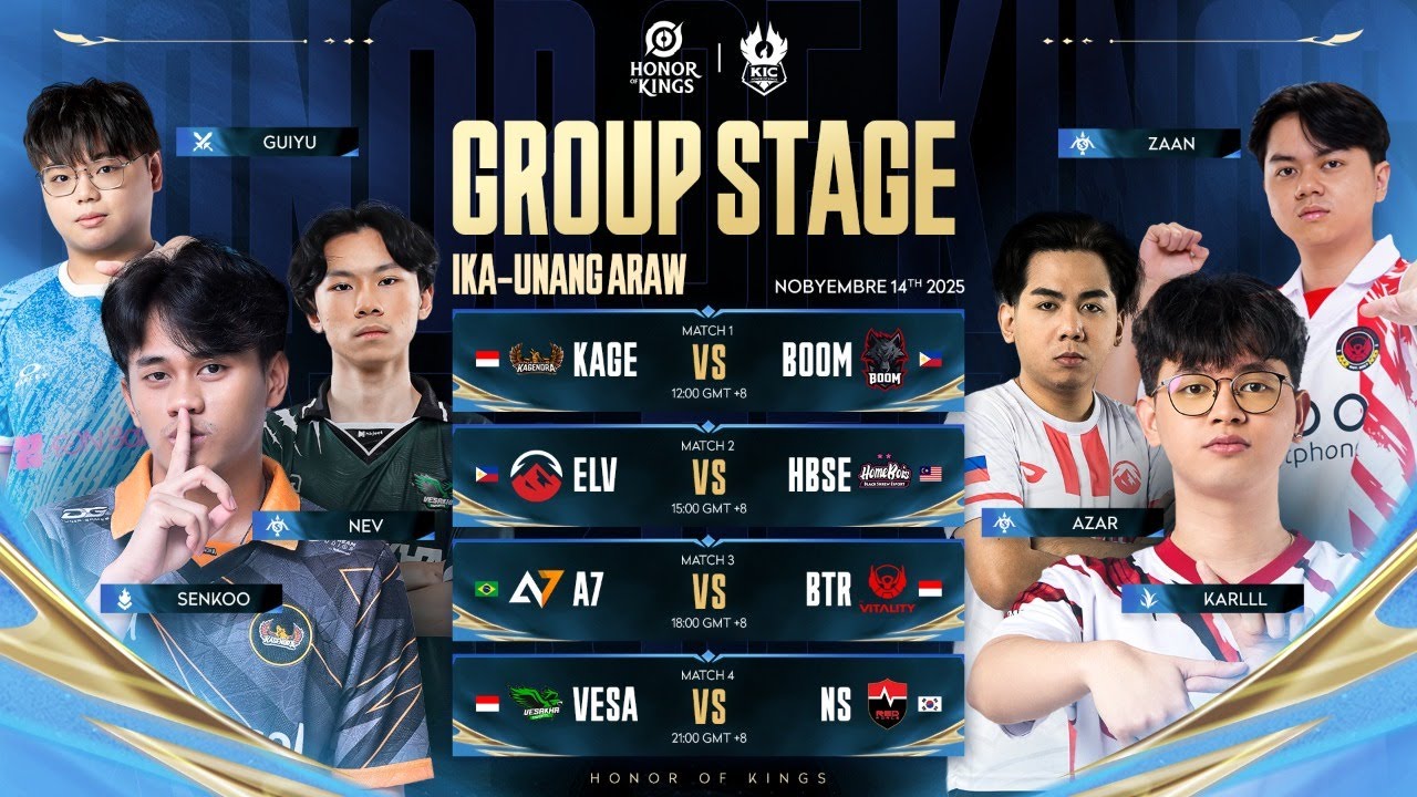 Group Stage Day 1 [BO5] Match 1โฐ12:00 GMT+8 - ๐ฎ๐ฉ KAGENDRA vs ๐ต๐ญ BOOM Esports Match 2โฐ15:00 GMT+8 - ๐ต๐ญ Elevate vs ๐ฒ๐พ HomeBois BSE Match 3โฐ18:00 GMT+8 - ๐ง๐ท Alpha 7 Esports vs ๐ฎ๐ฉ Bigetron by Vitality Match 4โฐ21:00 GMT+8 - ๐ฎ๐ฉ Vesakha Esports vs ๐ฐ๐ท Nongshim RedForce Six regions. Sixteen teams. Simula na ng Group Stage of KIC 2025! #shinehok #2025HOK #HonorOfKings #HOKEsports #KIC2025