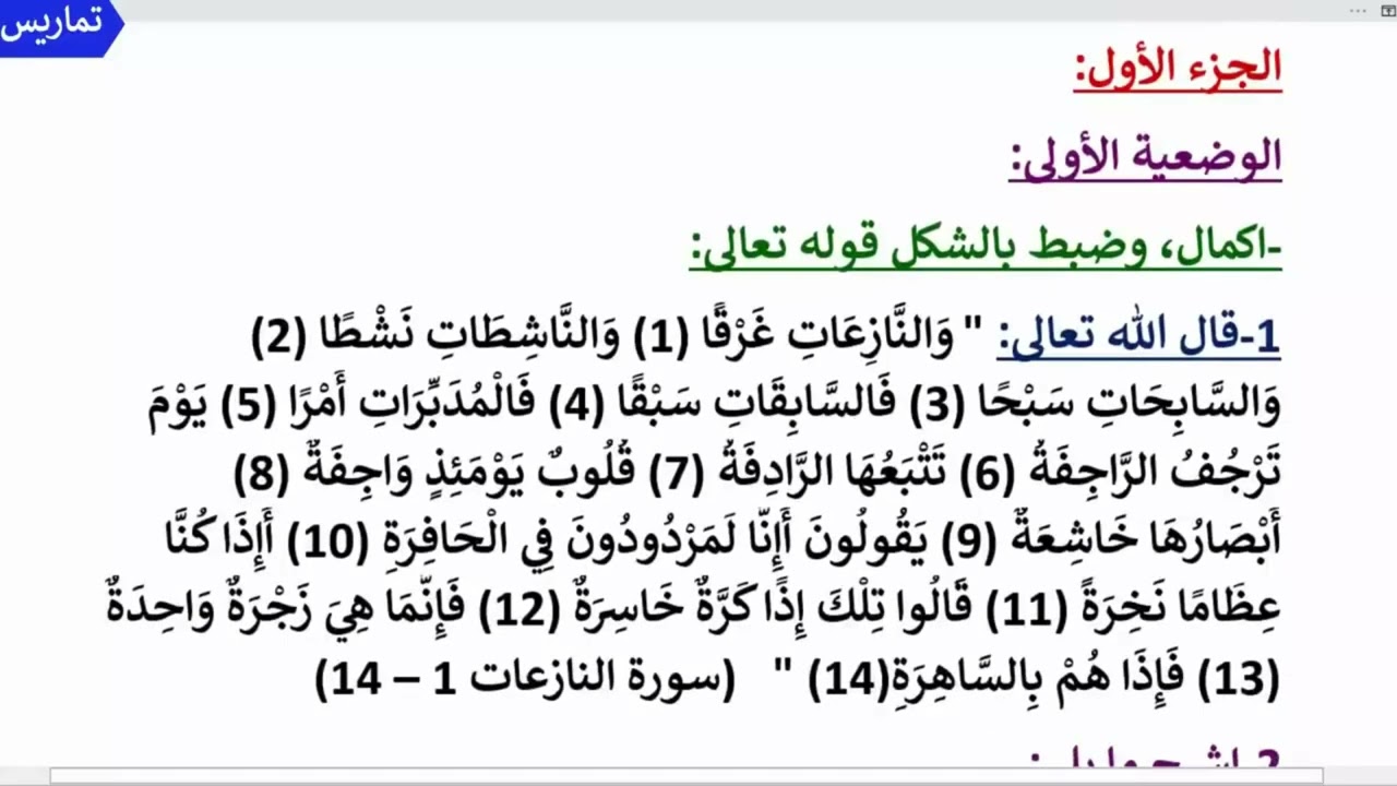 امتحان التربية الاسلامية الفصل الاول السنة الثالثة ابتدائي