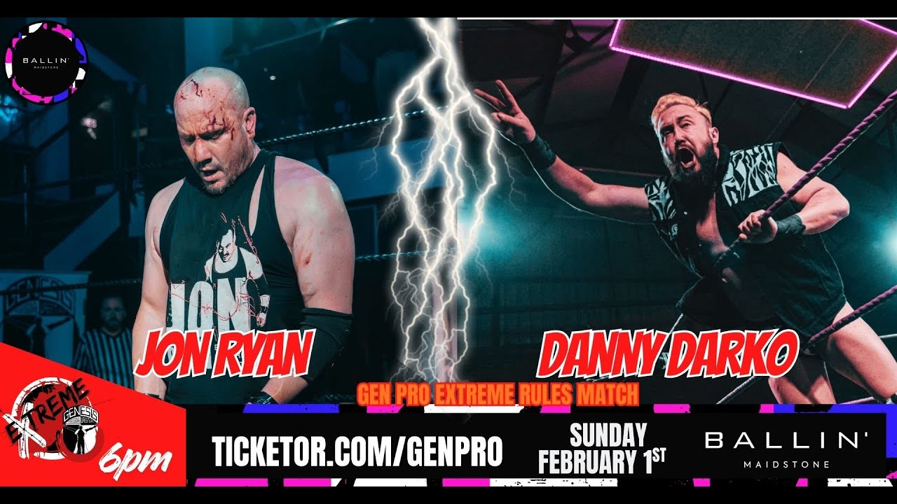 Match 4 of the night sees former Gen Pro EXTREME World Champion, The Bad Boy of British Wrestling Jon Ryan return to the Gen Pro Ring to take on newcomer to Genesis, British Deathmatch Legend, Danny Darko in a FIRST TIME EVER MATCH. Contested under Gen Pro EXTREME Rules, this match was everything it promised to be! Check out the action here and let us know your thoughts in the comments. ◾Tickets : ticketor.com/genpro Videography credit to Bobby Davies https://www.instagram.com/bdavies_creative --------------------------------------------------------------------- Come see the Action ! - https://www.genesisprofessionalwrestling.com/Events --------------------------------------------------------------------- Follow GenPro for more exciting action! - Subscribe to GenPro on YouTube: https://www.youtube.com/@genproonline --------------------------------------------------------------------- Check out GenPro for Tickets and Training opportunities: https://www.genesisprofessionalwrestling.com/ Follow GenPro on Facebook: https://www.facebook.com/GenProOnline Follow GenPro on X: https://x.com/GenProOnline Follow GenPro on Instagram: https://www.instagram.com/GenProOnline/ Follow GenPro on TikTok: https://www.tiktok.com/@genproonline --------------------------------------------- Check out our Extreme Channel (18+) ! : https://www.youtube.com/@GenesisExtremeWrestling ------------------------------------- Chapters :