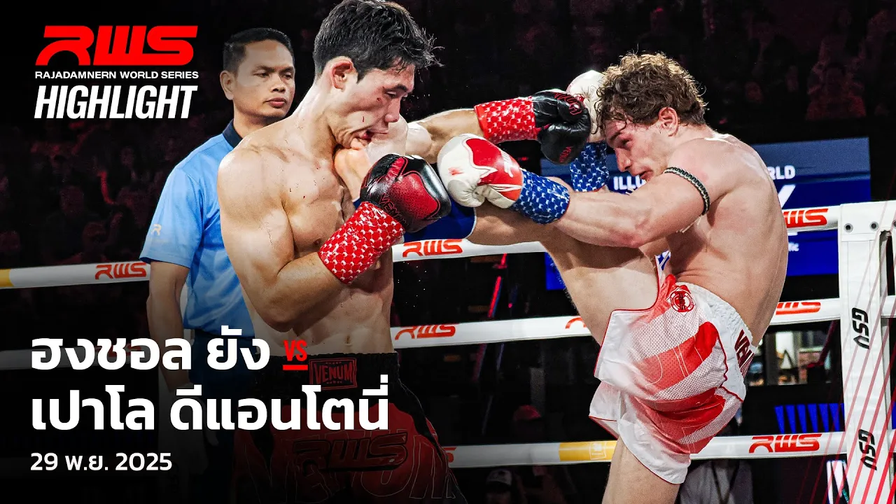 #ออกอาวุธกันอุตลุด! 💥 ไม่มีใครยอมใคร ผลลัพธ์ที่ออกมาก็จะเป็นแบบนี้นี่แหละสำหรับศึกดวลเดือดระหว่าง 🇰🇷 "ยัง ฮงชอล" กับ 🇮🇹 "เปาโล ดีแอนโทนี่"! #ทุกคืนวันเสาร์ ตั้งแต่เวลา 20.05 เป็นต้นไป 🌏 : ถ่ายทอดสด 200+ ประเทศและเขตปกครองพิเศษทั่วโลกบน DAZN (นอกประเทศไทย) ในประเทศไทย 📺 : Workpoint หมายเลข 23 เฟซบุ๊ก : Workpoint Entertainment และ RWS - Rajadamnern World Series #RWS #RajadamnernWorldSeries #ราชดำเนิน #เวทีมวยราชดำเนิน #มวยไทย #DAZN #Workpoint #Workpoint23