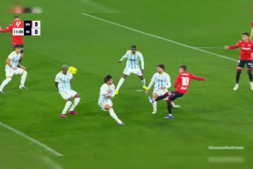 [Highlights] Aimar controls the ball in front of the goal, adjusts and volleys, but the ball misses the frame