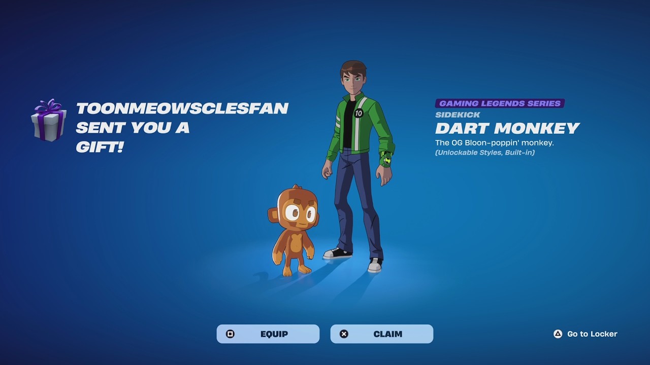 This is the Bloons TD6 Dart Monkey collab! He's a sidekick valued at 1,500 v-bucks. Is he worth it? Let's find out! ------ SOCIAL MEDIA ------ ★ Fortnite Support-A-Creator Code (#EpicPartner): tabortime ★ My Twitch: https://www.twitch.tv/taborhill ★ My Twitter: https://twitter.com/TaborTimeYT ★ My Discord Server: https://discord.gg/MMm5s23 ★ My Instagram: https://www.instagram.com/taborhillyt/ ★ My TikTok: https://www.tiktok.com/@taborhillyt ------ SPONSORS ------ ★SteelSeries (Code: TABORTIME at checkout): https://steelseri.es/tix ★KontrolFreek (Code: TABORTIME at checkout): http://www.kontrolfreek.com/discount/TABORTIME ★ SecretLab (Gaming Chairs): https://secretlab.co/?rfsn=6867768.63be82&utm_source=refersion&utm_medium=affiliate&utm_campaign=6867768.63be82 ★ Tabor Hill Merchandise: https://teespring.com/stores/tabor-hill ★ Become A MEMBER Of My Channel: https://www.youtube.com/channel/UCgewignMTv1bbiJ3HKcvCpg/join ------ EQUIPMENT I USE ------ ★ My Gaming Monitor: https://amzn.to/35ZTvXo ★ My Capture Card: https://amzn.to/3kXFmOs ★ My Gaming Headset: https://amzn.to/3pSxkKt ★ My Laptop: https://amzn.to/3kY2ywe ★ My Gaming Chair: https://secretlab.co/fortnite?rfsn=6867768.63be82&utm_source=refersion&utm_medium=affiliate&utm_campaign=6867768.63be82 ------ VIDEO CREDITS ------ ★Thumbnails Created By: MsMarvel311 https://twitter.com/MsMarvel311 ★Intro And Outro Music Free At: https://www.youtube.com/user/ocremix