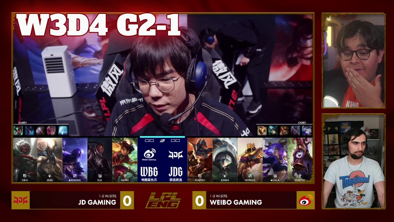 lpl Week 3 Day 4 WBG vs JDG Game 1 China LPL Spring 2026 - Weibo Gaming vs JD Gaming Game 1 | JDG vs WBG G1 2026 English VOD | Spring 2026 JD Gaming vs Weibo Gaming 1 VOD League of Legends Pro League China LPL Spring 2026 - regular split. Fourth match of the day - Weibo Gaming vs JD Gaming best of 3 Game 1 WBG vs JDG G1. JD Gaming Line-up: Xiaoxu - Top JunJia - Jungle HongQ - Mid Gala - ADC Vampire - Support Weibo Gaming Line-Up: Zika - Top Jiejie - Jungle Xiaohu - Mid Elk - ADC Erha - Support Patch: 26.6 - Season 16 Game date: 18.04.2026 | 04/18/2026 | April 18th 2026 Game place: china Casters: Raafaa and Alk #LPL #lol #LPL2026 #lolesports #leagueoflegends #league #vods #epicskillshot #ess LPL English stream: twitchtch.tv/lplenglish S16 LPL Spring 2026 All Games Playlist: https://bit.ly/4dtGPLw There are more playlists in the playlist section on the channel! You can always follow all games from both channels and news/updates on my FB page - facebook.com/Epicskillshot Follow me on Twitter: www.twitter.com/epicskillshot Please like/share/comment and sub if you haven't yet - it helps a lot! ☕ If you'd like to support the channel, you can buy me a coffee: https://www.buymeacoffee.com/epicskillshot ☕