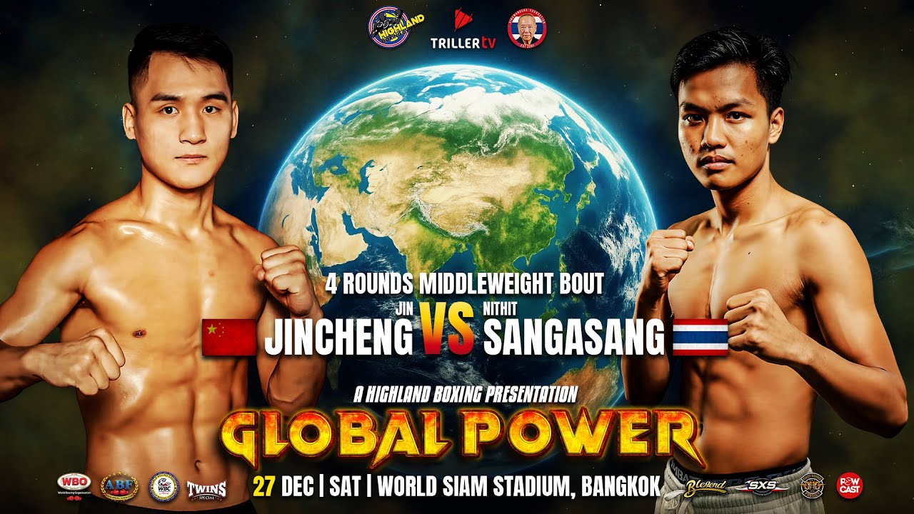 4 Rounds - Middleweight Bout Highland Boxing Promotions presents GLOBAL POWER December 27, 2025 World Siam Stadium, Bangkok, Thailand #GlobalPower #JinJinChengVsSangasang #Middleweight #HighlandBoxing #WorldSiamStadium #BangkokBoxing #InternationalShowdown