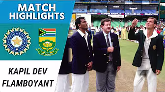 Join this channel to get access to perks: / @cricketmax87 South Africa recorded a memorable Test victory over India with a day to spare, their first win since readmission to the ICC, in a match defined by hostile pace, grit, and a rare batting fightback from India. Winning the toss on a slow pitch at home, Kepler Wessels surprised everyone by asking India to bat first. But hostile bowling from Allan Donald and the fallibility of the Indian top order meant South Africa took control immediately. Donald exploited the conditions brilliantly, taking 12 wickets in the match, the fourth-best figures for South Africa in Tests. India’s batsmen struggled, with only Mohammad Azharuddin showing some composure, scoring his only first-class fifty of the tour. Injuries also handicapped India, with Shastri limited to just two overs. South Africa’s batting was anchored by Hansie Cronje, who displayed immense concentration, facing 411 balls over nearly nine hours to compile a marathon century at No. 3. His innings, coupled with support from Hudson, gave South Africa their first three-figure partnership of the series. India’s resistance came largely from Kapil Dev, who entered at 27 for 5 in the second innings. Despite injury and a long day in the field, he scored a flamboyant 129, demonstrating classical drives and powerful leg-side strokes, keeping India in the contest temporarily. However, the top and middle order repeatedly collapsed, allowing South Africa to take command. With assertive batting from Wessels and a controlled approach, South Africa chased the target of 153 with seven minutes left on the fourth day, sealing a historic win. B. Richardson’s nine catches as wicket-keeper added to the landmark nature of the victory. This match highlighted Donald’s pace, Cronje’s endurance, and Kapil’s resilience, a classic clash of talent and determination that set the tone for South Africa’s new era in international cricket. #indvssa #highlights #cricketmax #india #kapildev