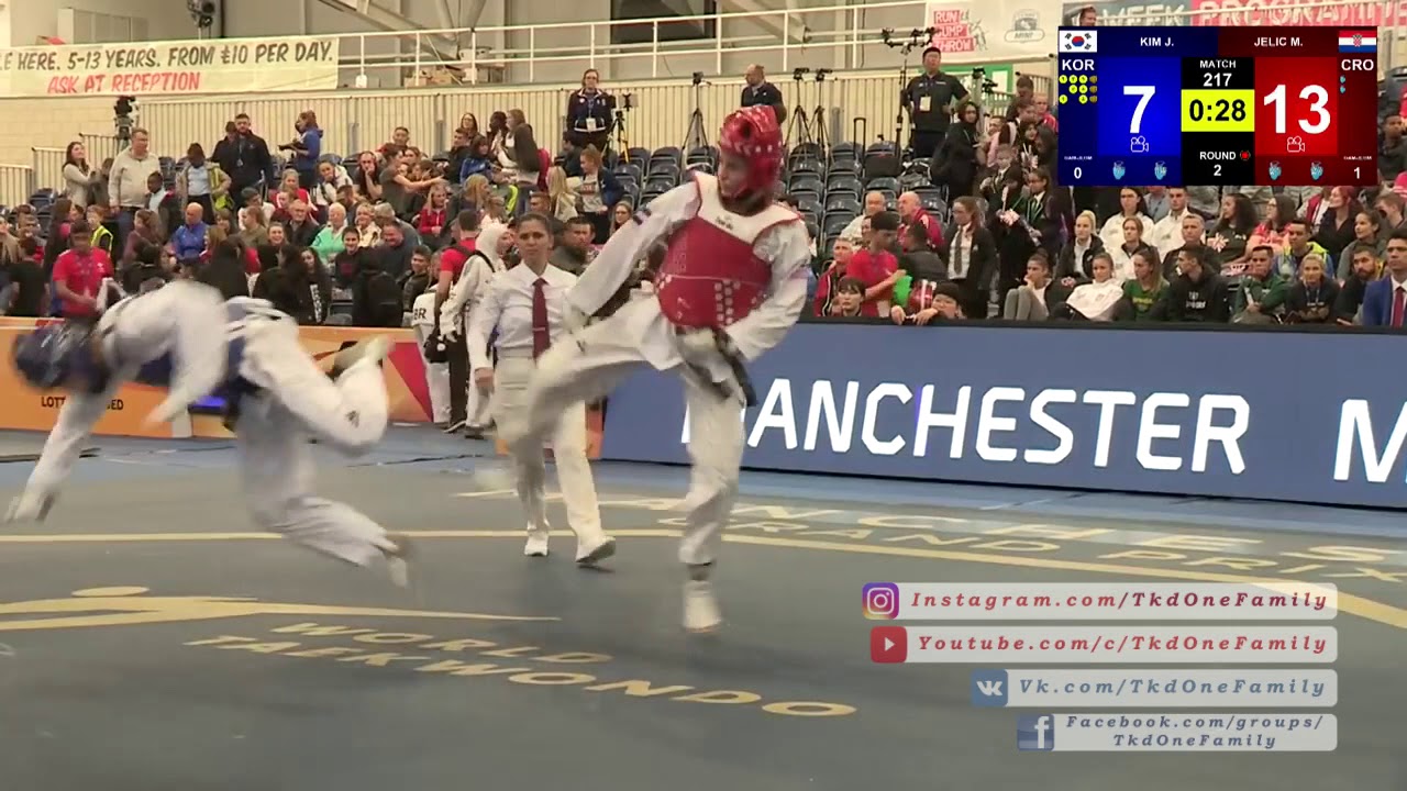 Jan Di KIM (KOR) vs Matea JELIC (CRO) 2018 Manchester World Taekowndo Grand Prix 1/8 F-67 217 Insta: https://www.instagram.com/tkdonefamily/ Youtube: https://www.youtube.com/c/tkdonefamily VK: https://vk.com/tkdonefamily FB: https://facebook.com/groups/tkdonefamily
