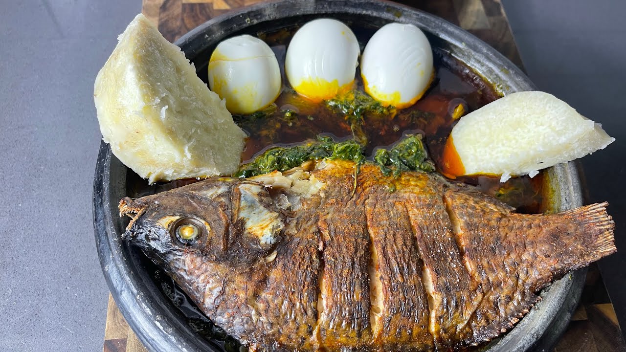 Let’s make the most delicious Ampesie & Kontonmire abom. This is very popular among the Ashanti’s and it’s very nutritious and less time consuming too. #ampesi #abom #ghanaianfood #spinachsauce #cooking —-~~~~ ingredients ~~~~~ 1kg fresh spinach 1 fresh tomato 1 habanero pepper 3-4 fresh okro 1 tbs turkey berries 1 tuber os yam 3 eggs 2 medium onions Palm oil 1 tbs peanut butter Tilapia Other related recipes; •Ghanaiansdelicacies🇬🇭