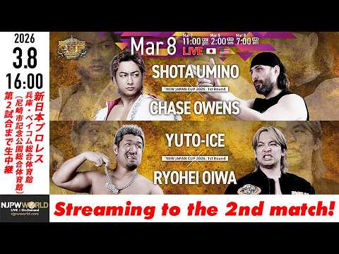 #njcup #新日本プロレス #njpw #newjapanprowrestling #njpwworld 🦁チャンネル登録はこちら⇩ 3月8日(日) 16:00開始 NEW JAPAN CUP 2026 兵庫・ベイコム総合体育館(尼崎市記念公園総合体育館) 第2試合目までYouTubeで無料配信! 🌏3試合目以降は『#NJPWWORLD』で配信! いますぐ見る ⇒ ※ 一部入退場曲は、権利上の理由で消音になります。あらかじめご了承ください ------------------------------------ 🦁Subscribe now and never miss a new video⇩ NEW JAPAN CUP 2026 (SUN.MAR.8.2025) Streaming to the 2nd match! After the 3rd match, you can enjoy the match at NJPW WORLD!! Watch Now ⇒ ※ Due to music licensing, some wrestlers'entrance themes muted during the event. ------------------------------------ ★NJPW WORLD 公式SNS | Follow NJPW WORLD on all social media platforms X - Facebook - Instagram - TikTok -