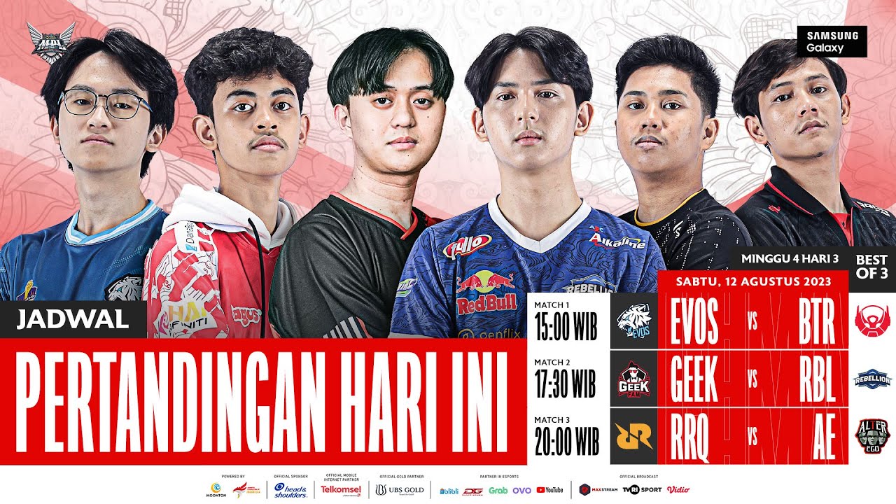 Hari ketiga Minggu keempat MPL Indonesia Season 12 Regular Season akan dimulai. Semakin dekat dan semakin menegangkan persaingan para tim untuk mengejar titel juara paruh musim. Mampukah para pemuncak klasemen mempertahankan dominasinya? Jangan lewatkan siaran langsungnya dan dukung tim favoritmu! Jangan lupa untuk mengikuti semua akun media sosial MPL Indonesia untuk mendapatkan info terbaru. #MPLIDS12 #WEOWNTHIS