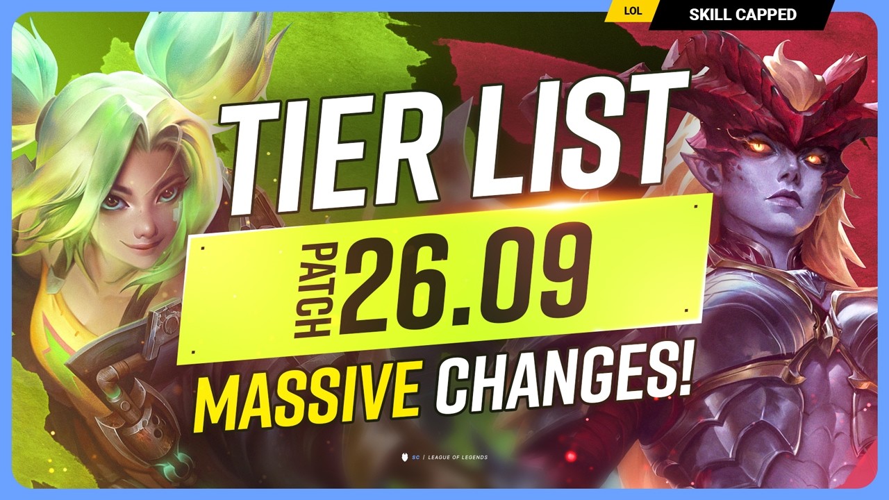 โบ๐๐๐๐๐๐๐: https://www.skill-capped.com/lol#TierList2609 โบNEW BUILDS SITE: skill-capped.com/lol/guides โบ๐๐๐๐๐๐๐๐๐: http://goo.gl/kGvFCu โบ๐๐๐๐๐๐๐: https://discord.gg/CBsV72B What is Skill Capped? Skill Capped has one goal in mind: help YOU become a BETTER player FAST! We create guides that ACTUALLY WORK by the TOP PROS and COACHES. We're so confident we can help you IMPROVE that we back it up with a RANK IMPROVEMENT GUARANTEE not found anywhere else! Follow Skill Capped at: โบTikTok: https://www.tiktok.com/@skillcappedlol โบFACEBOOK: https://www.facebook.com/skillcapped โบTWITTER: https://twitter.com/skillcapped Chapters: 0:00 - Introduction 1:14 - Item & Rune Change Analysis 16:13 - Top Changes 19:02 - Top Tier List 20:27 - Jungle Changes 25:18 - Jungle Tier List 28:04 - Mid Changes 29:51 - Mid Tier List 31:07 - ADC Changes 34:17 - ADC Tier List 36:00 - Support Changes 36:26 - Support Tier List 37:34 - SkillCapped & Outro Concepts: league of legends,league of legends guide,lol guides,league of legends tips,league of legends coaching,how to get better at league of legends,skill capped,lol tips,lol tips and tricks,league of legends pro guides,how to improve at league of legends,lol coaching,skill-capped,lol season 16,lol s16,league of legends season 16,s16,2026 league of legends,lol meta 2026,season 16 guide,tier list 26.9,lol tier list 26.9,patch 26.9 tier list #lolguides #leagueoflegendsโโ #skillcapped #Season16 #LoL2026