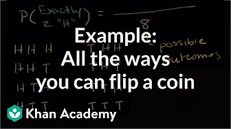 Courses on Khan Academy are always 100% free. Start practicing—and saving your progress—now: https://www.khanacademy.org/math/stat... Probability of exactly 3 heads in 5 flips using combinations Practice this lesson yourself on KhanAcademy.org right now: https://www.khanacademy.org/math/prob... Watch the next lesson: https://www.khanacademy.org/math/prob... Missed the previous lesson? https://www.khanacademy.org/math/prob... Probability and statistics on Khan Academy: We dare you to go through a day in which you never consider or use probability. Did you check the weather forecast? Busted! Did you decide to go through the drive through lane vs walk in? Busted again! We are constantly creating hypotheses, making predictions, testing, and analyzing. Our lives are full of probabilities! Statistics is related to probability because much of the data we use when determining probable outcomes comes from our understanding of statistics. In these tutorials, we will cover a range of